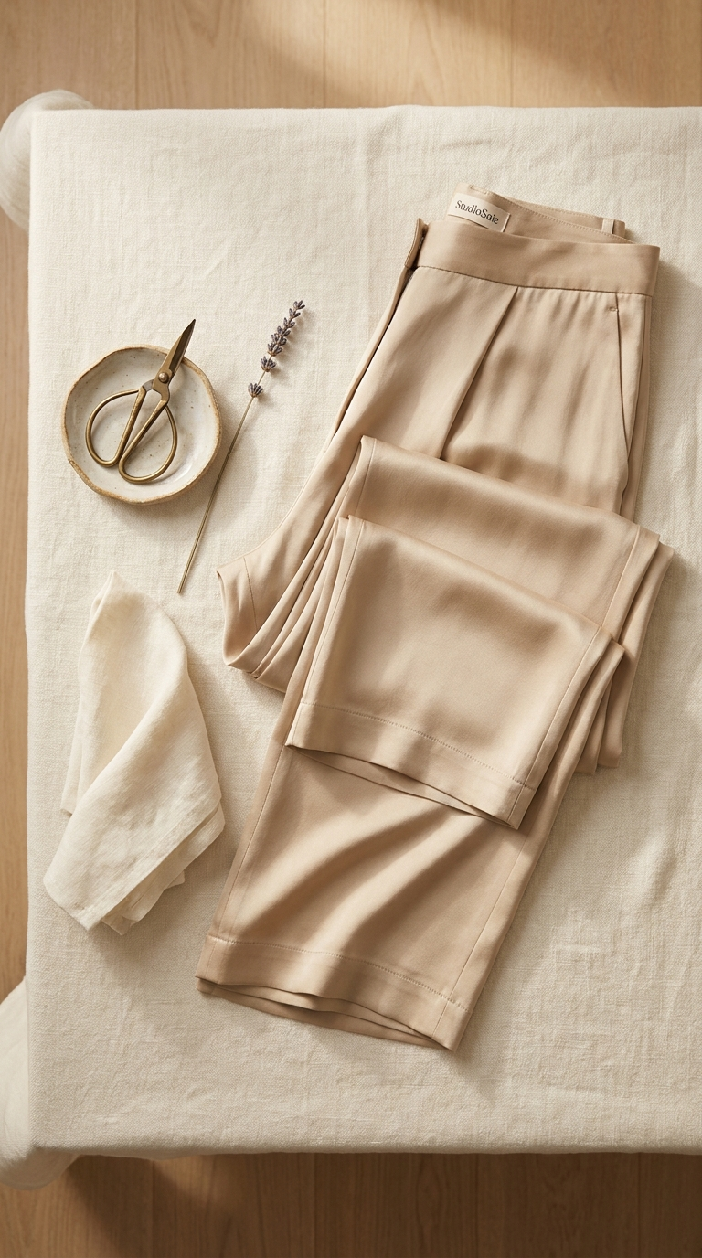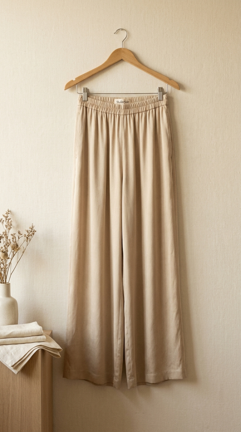 O seu corte fluido e a sua paleta intemporal (Bege, Preto) fazem dela uma peça-chave. Use-a com uma camisa branca para um look chique e descontraído, um top de seda para um conjunto luxuoso, ou um camisola fina de caxemira no inverno.