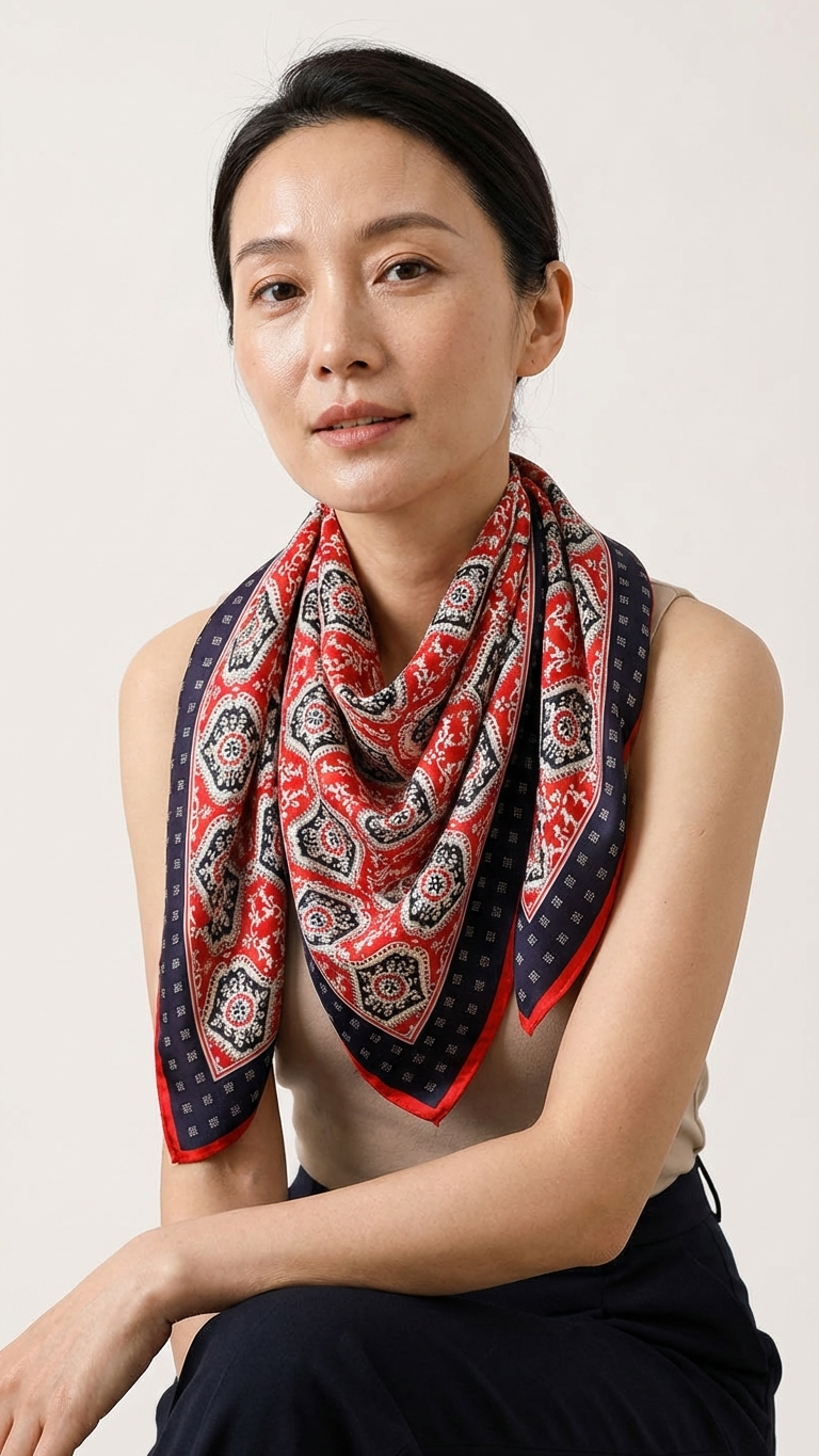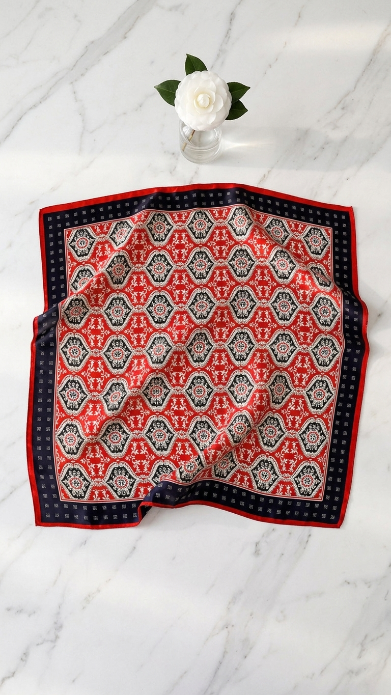 Naš kvadratni šal je na voljo v priročni bandana obliki, idealen za več načinov vezanja okoli vratu, v laseh ali na dodatku.