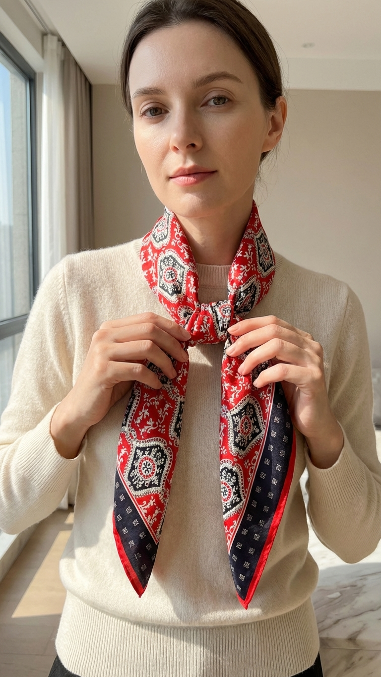 Svila ima rahlo naravno oprijemljivost, ki omogoča, da šal ostane na mestu, ko je zavezan. Za dodatno oporo naredite dvojni vozel.